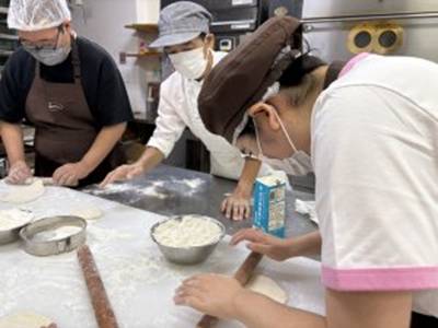 8月23日(土)パン作り 今日は、事業所ごとに、パンやピザを作りました。日頃は携わることができない工程が体験できたので、皆さんとても楽しそうでした。できたてのパンやピザをいっぱい食べて、おなかも超満足です。